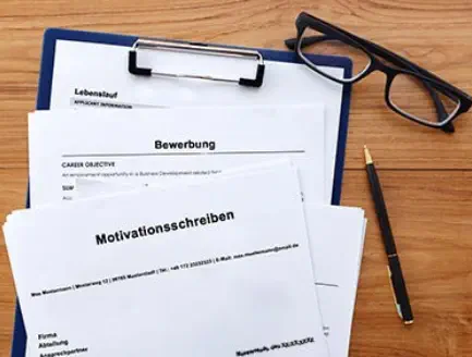 Motivationsschreiben, Lebenslauf und Zeugnisse.
